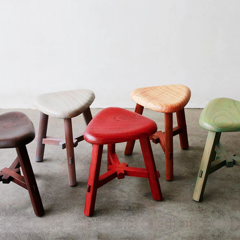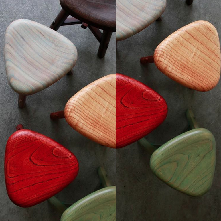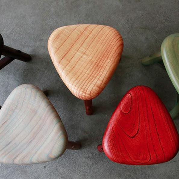 發揮三角形穩固的特點及手工研磨的圓潤質感, 每一張椅面的原木紋理都是不同的面貌及韻味, 更是提升整體木作的趣味性, 平穩的三角結構讓您坐的舒適還不佔用您的空間。