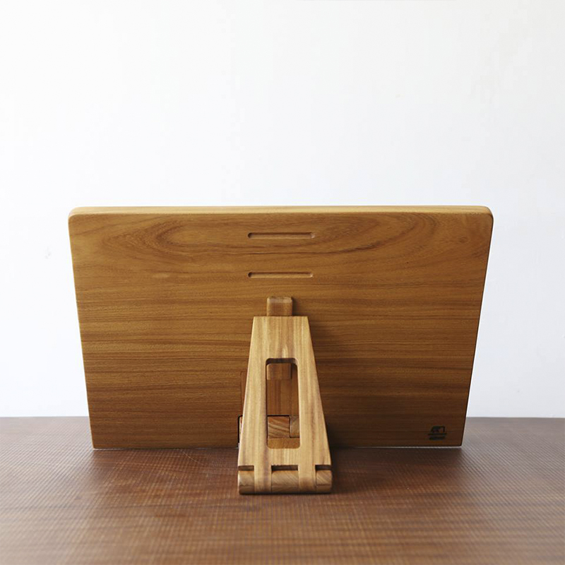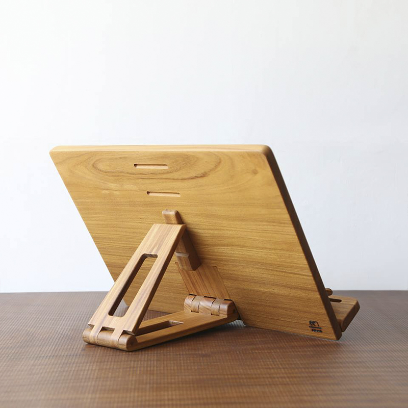 【設計特色】 ◎書籍及平板產品皆可使用 ◎調整最符合您的使用角度 ◎不佔空間的設計 平整收合厚度僅有5.5公分 【設計理念】 設計這款悅讀架是能改善現代人閱讀或使用3C產品低頭的習慣, 利用木作轉軸及榫接結構,調整適合您的最佳角度。 不僅擁有著實用的功能,還內含著工藝的手